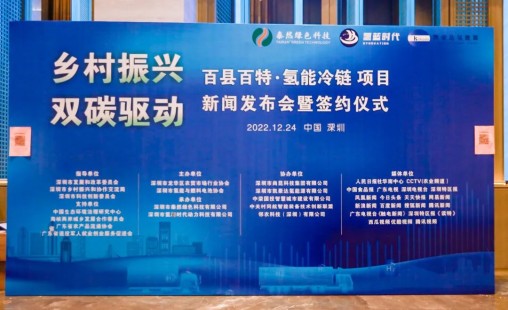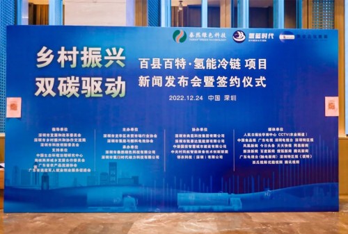 12月24日,由深圳市發展和改革委員會、深圳市鄉村振興和協作交流局、深圳市科技創新委員會為指導單位,深圳市龍華區農貿市場行業協會與深圳市氫能與燃料電池協會攜手主辦,深圳市泰然綠色科技有限公司、深圳市氫藍時代動力科技有限公司、深圳市凱豪達氫能源有限公司共同打造“百縣百特,氫能冷鏈”項目新聞發布會暨簽約儀式在深圳市西麗喜來登酒店隆重舉行。