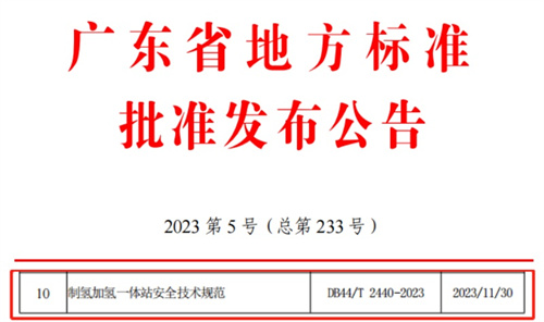 全國第一部省級《制氫加氫一體站安全技術規范》在2023年8月發布,11月30日正式實施,這是由豪達氫能源作為主導單位歷經3年完成的一份既有國際化水平,又有廣東特色的地方標準,不僅有助于提升制氫加氫一體站的安全管理水平,更有利于推進統一規范其安全技術管理標準。