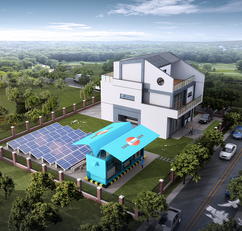 Powered by waste electricty generated by renewables, the electrolysers produce hydrogen and put them in storage. The fuel cells later can use stored hydrogen to generate electricity to power electric equipment, which realizes power-to-gas&heat. Combined with battery and solar PV, the system can relieve the stress of electricity usage at peak hours as well as serve as off-grid to power remote areas.